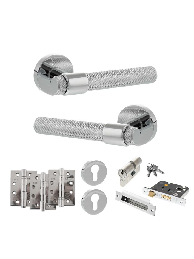 Senza Pari Andretta Door Handle Pack (Euro Lock Set - 3" CE Sashlock, 4" Fire Rated Hinges x3) - Polished Chrome