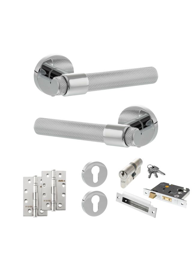 Senza Pari Andretta Door Handle Pack (Euro Lock Set - 3" CE Sashlock, 4" Slim Knuckle Hinges x2) - Polished Chrome