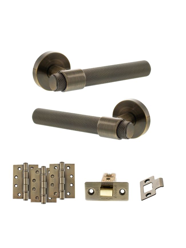 Senza Pari Andretta Door Handle Pack (Latch Set - 3" CE Latch, 4" Fire Rated Hinges x3) - Antique Brass