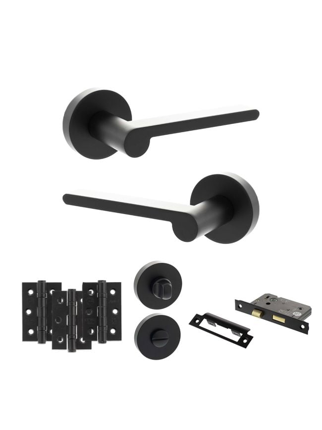 Senza Pari Darrio Door Handle Pack (Bathroom Set - 2.5" CE Bathroom Lock, 3" Fire Rated Hinges x3) - Matt Black