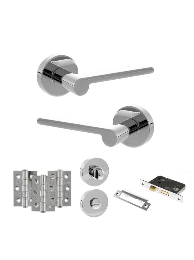 Senza Pari Darrio Door Handle Pack (Bathroom Set - 2.5" CE Bathroom Lock, 3" Fire Rated Hinges x3) - Polished Chrome