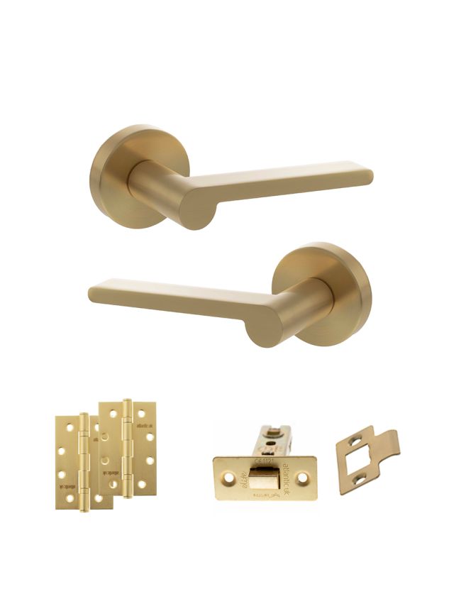 Senza Pari Darrio Door Handle Pack (Latch Set - 2.5" CE Latch, 4" Slim Knuckle Hinges x2) - Satin Brass