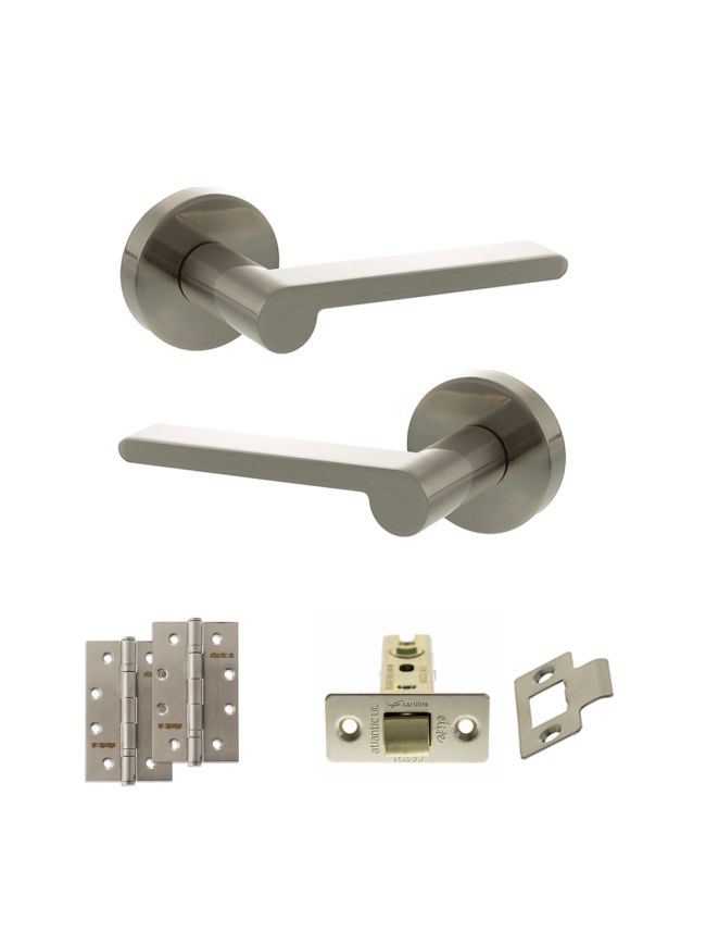 Senza Pari Darrio Door Handle Pack (Latch Set - 2.5" CE Latch, 4" Slim Knuckle Hinges x2) - Satin Nickel