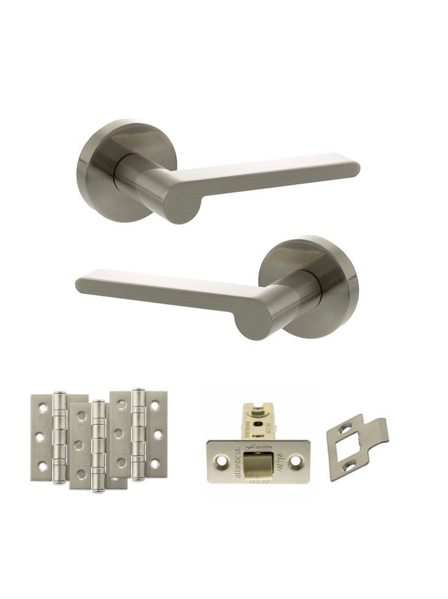Senza Pari Darrio Door Handle Pack (Latch Set - 3" CE Latch, 3" Fire Rated Hinges x3) - Satin Nickel