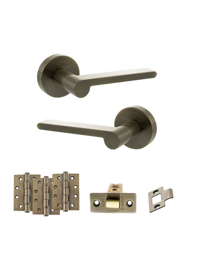 Senza Pari Darrio Door Handle Pack (Latch Set - 3" CE Latch, 4" Fire Rated Hinges x3) - Antique Brass