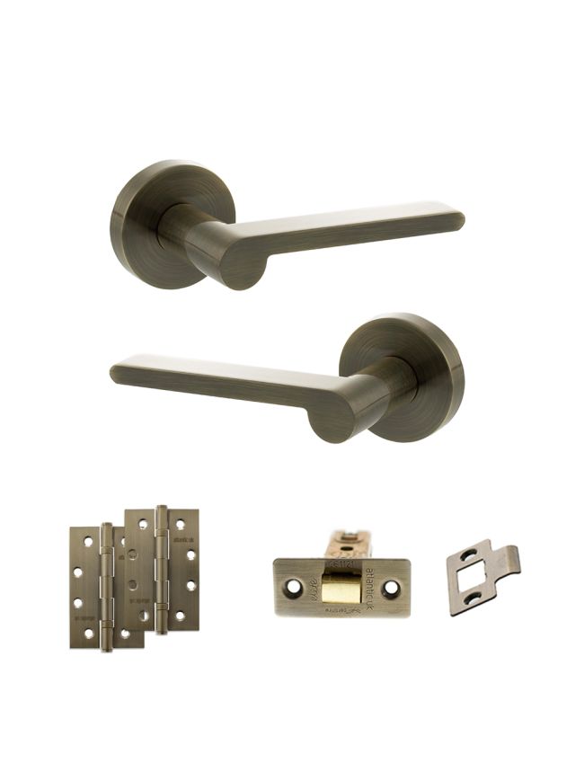 Senza Pari Darrio Door Handle Pack (Latch Set - 3" CE Latch, 4" Slim Knuckle Hinges x2) - Antique Brass