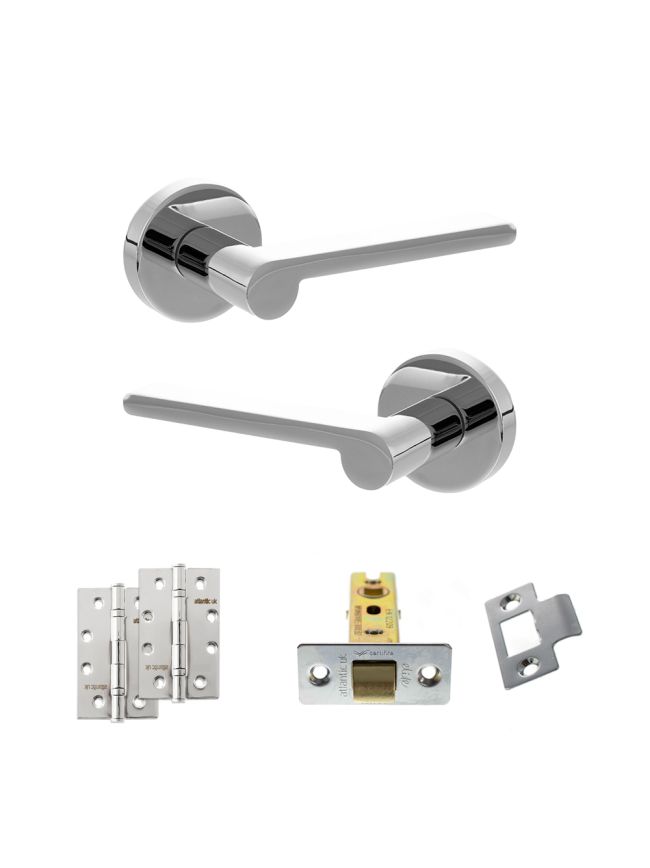 Senza Pari Darrio Door Handle Pack (Latch Set - 3" CE Latch, 4" Slim Knuckle Hinges x2) - Polished Chrome
