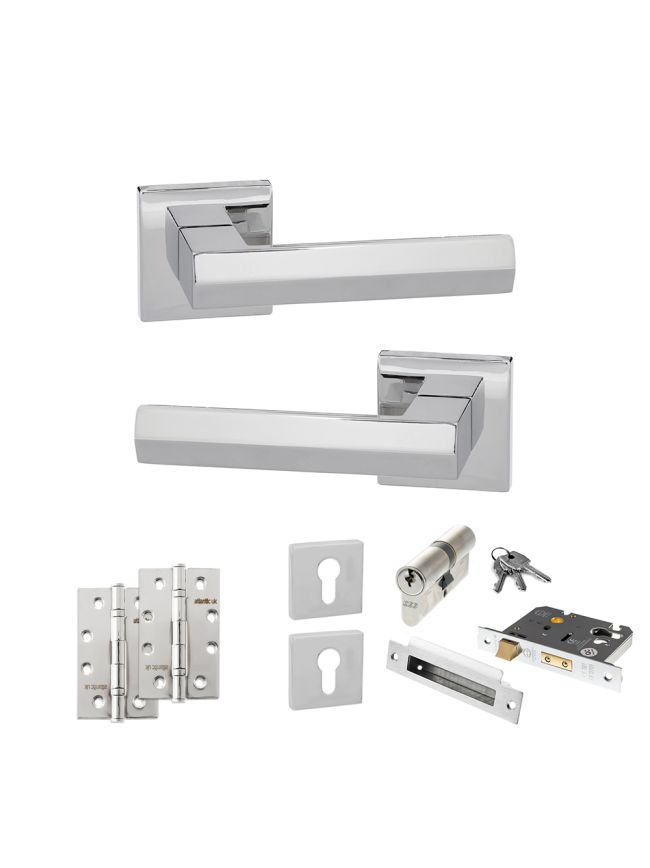 Senza Pari Davoli Door Handle Pack (Euro Lock Set - 3" CE Sashlock, 4" Slim Knuckle Hinges x2) - Polished Chrome