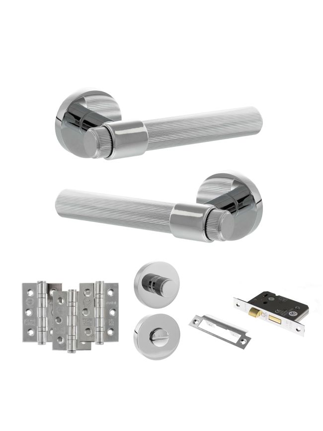 Senza Pari Fasana Door Handle Pack (Bathroom Set - 3" CE Bathroom Lock, 3" Fire Rated Hinges x3) - Polished Chrome
