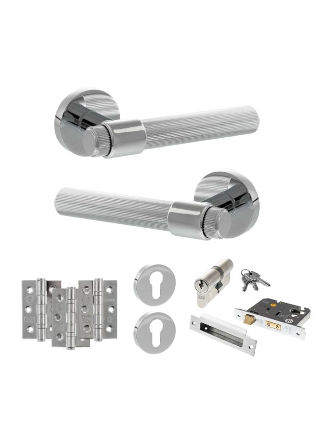 Senza Pari Fasana Door Handle Pack (Euro Lock Set - 3" CE Sashlock, 3" Fire Rated Hinges x3) - Polished Chrome