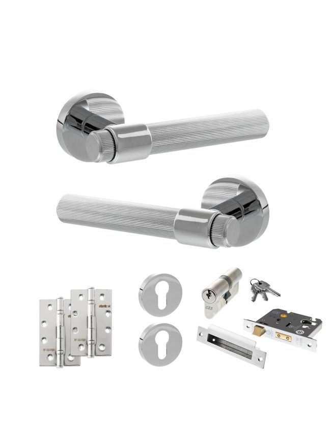 Senza Pari Fasana Door Handle Pack (Euro Lock Set - 3" CE Sashlock, 4" Slim Knuckle Hinges x2) - Polished Chrome