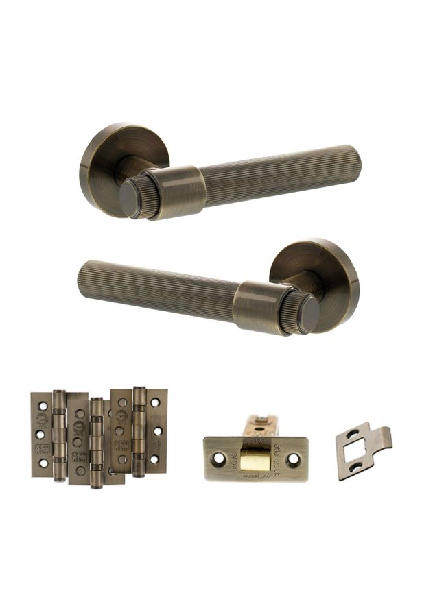 Senza Pari Fasana Door Handle Pack (Latch Set - 2.5" CE Latch, 3" Fire Rated Hinges x3) - Antique Brass