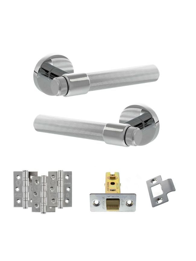 Senza Pari Fasana Door Handle Pack (Latch Set - 2.5" CE Latch, 3" Fire Rated Hinges x3) - Polished Chrome