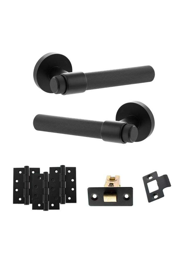Senza Pari Fasana Door Handle Pack (Latch Set - 3" CE Latch, 4" Fire Rated Hinges x3) - Matt Black