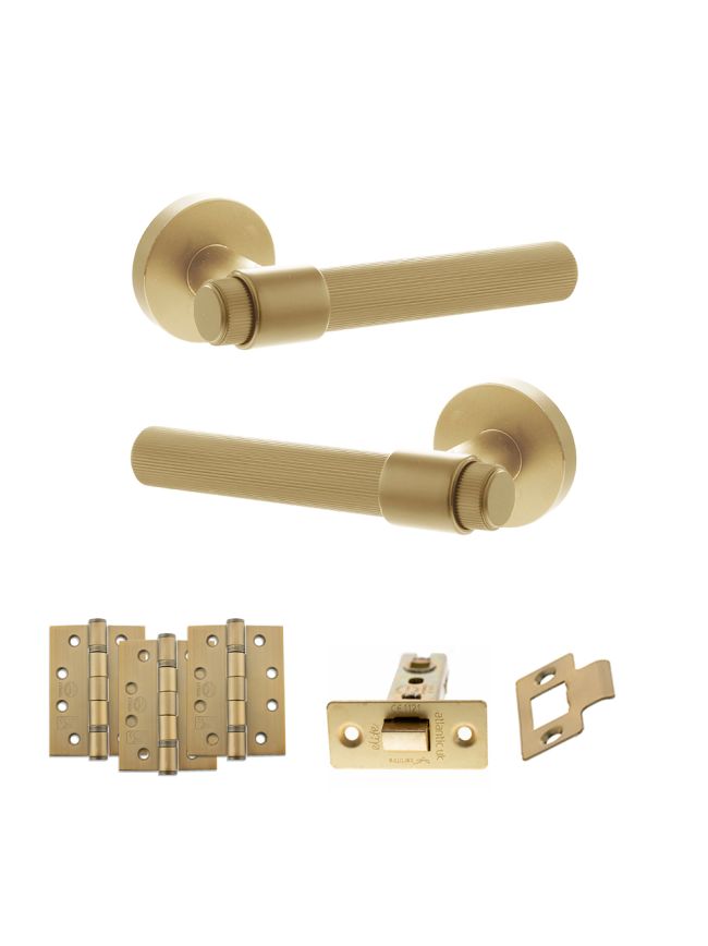 Senza Pari Fasana Door Handle Pack (Latch Set - 3" CE Latch, 4" Fire Rated Hinges x3) - Satin Brass