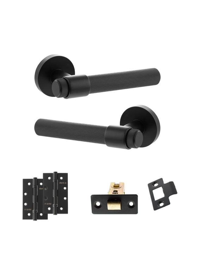 Senza Pari Fasana Door Handle Pack (Latch Set - 3" CE Latch, 4" Slim Knuckle Hinges x2) - Matt Black