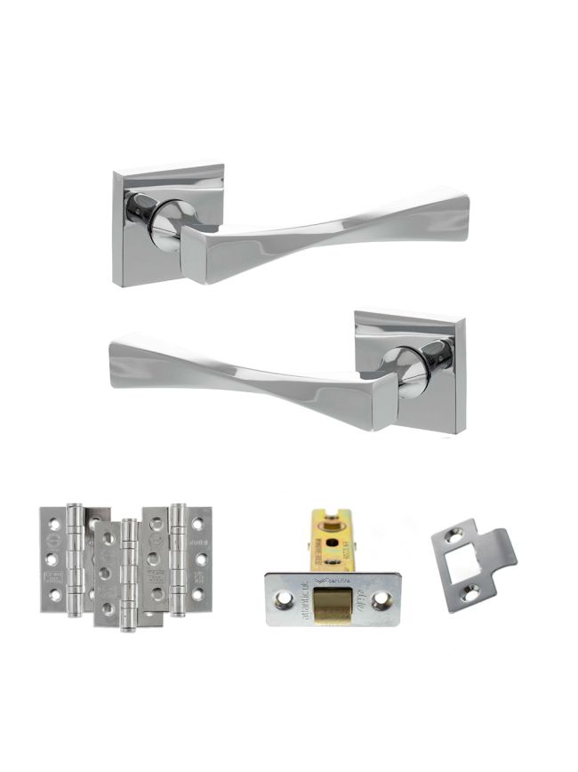 Senza Pari Guido Door Handle Pack (Latch Set - 2.5" CE Latch, 3" Fire Rated Hinges x3) - Polished Chrome