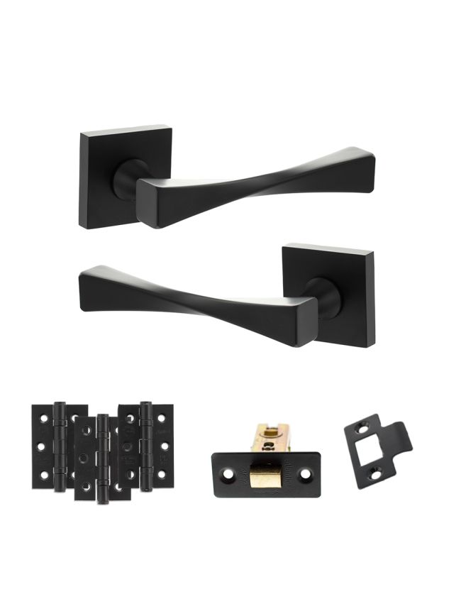 Senza Pari Guido Door Handle Pack (Latch Set - 2.5" CE Latch, 3" Fire Rated Hinges x3) - Matt Black