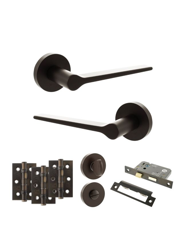 Senza Pari Laviano Door Handle Pack (Bathroom Set - 3" CE Bathroom Lock, 3" Fire Rated Hinges x3) - Urban Dark Bronze