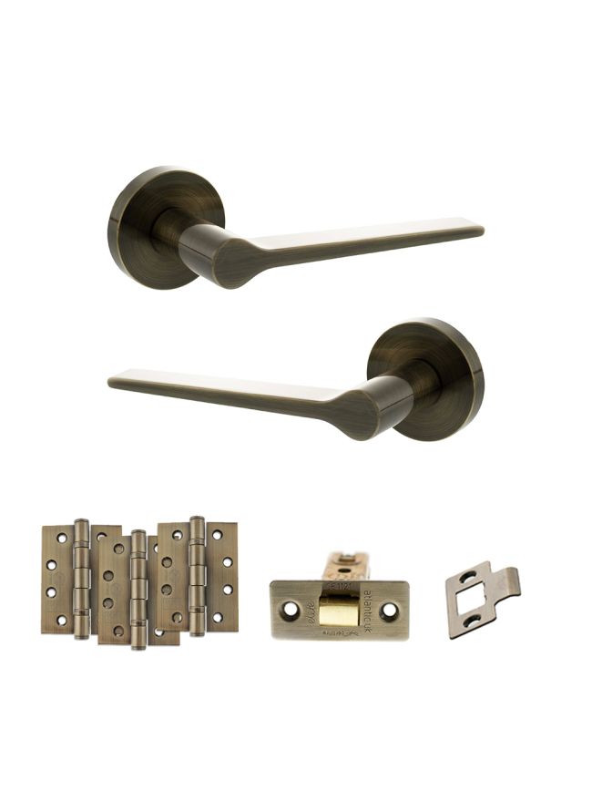 Senza Pari Laviano Door Handle Pack (Latch Set - 2.5" CE Latch, 4" Fire Rated Hinges x3) - Antique Brass