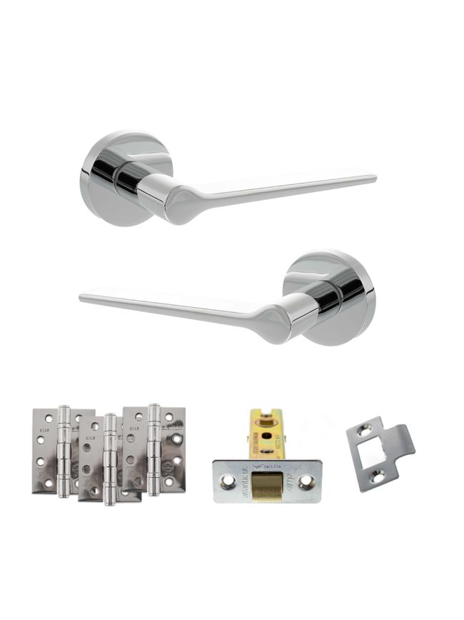 Senza Pari Laviano Door Handle Pack (Latch Set - 2.5" CE Latch, 4" Fire Rated Hinges x3) - Polished Chrome