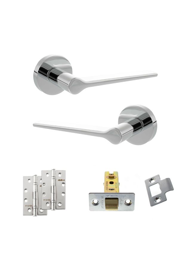 Senza Pari Laviano Door Handle Pack (Latch Set - 2.5" CE Latch, 4" Slim Knuckle Hinges x2) - Polished Chrome