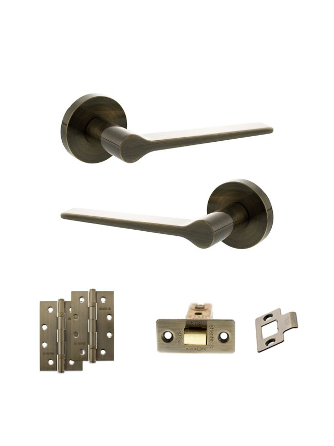 Senza Pari Laviano Door Handle Pack (Latch Set - 3" CE Latch, 4" Slim Knuckle Hinges x2) - Antique Brass