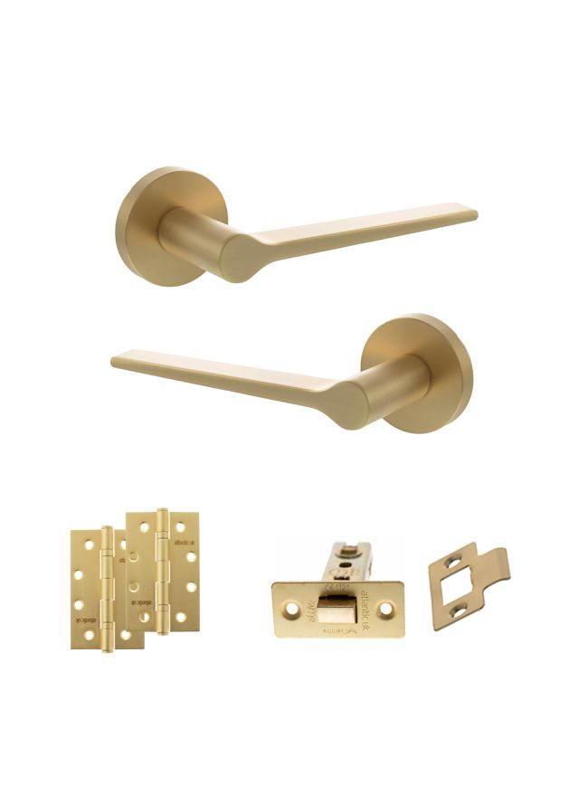 Senza Pari Laviano Door Handle Pack (Latch Set - 3" CE Latch, 4" Slim Knuckle Hinges x2) - Satin Brass