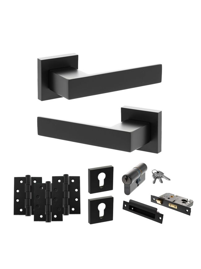 Senza Pari Panetti Door Handle Pack (Euro Lock Set - 3" CE Sashlock, 4" Fire Rated Hinges x3) - Matt Black