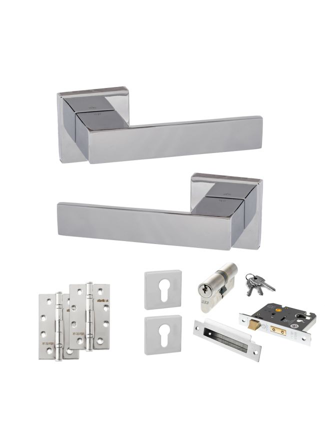 Senza Pari Panetti Door Handle Pack (Euro Lock Set - 3" CE Sashlock, 4" Slim Knuckle Hinges x2) - Polished Chrome