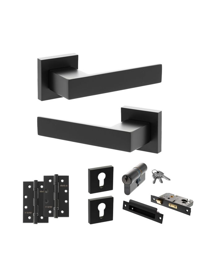 Senza Pari Panetti Door Handle Pack (Euro Lock Set - 3" CE Sashlock, 4" Slim Knuckle Hinges x2) - Matt Black