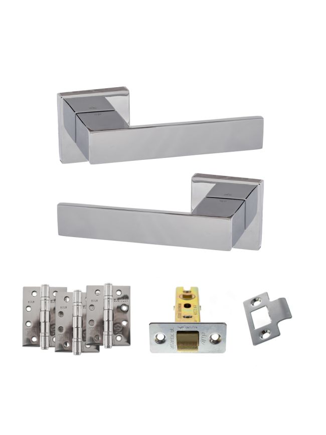 Senza Pari Panetti Door Handle Pack (Latch Set - 3" CE Latch, 4" Fire Rated Hinges x3) - Polished Chrome