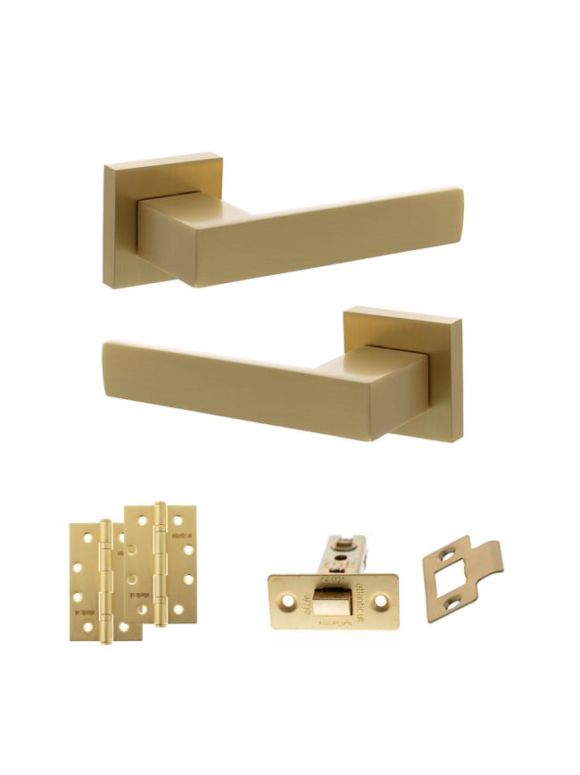 Senza Pari Panetti Door Handle Pack (Latch Set - 3" CE Latch, 4" Slim Knuckle Hinges x2) - Satin Brass