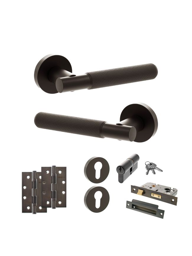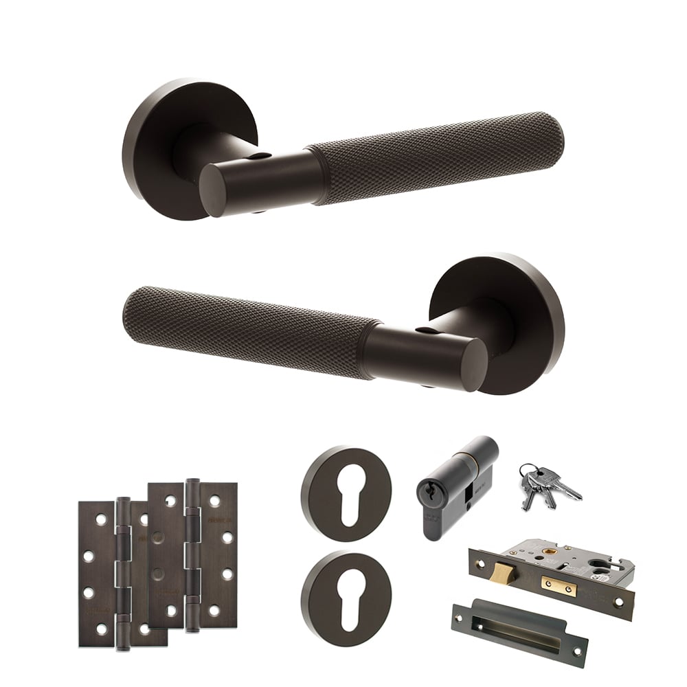 Senza Pari Rosarno Door Handle Pack (Euro Lock Set - 3" CE Sashlock, 4" Slim Knuckle Hinges x2) - Urban Dark Bronze