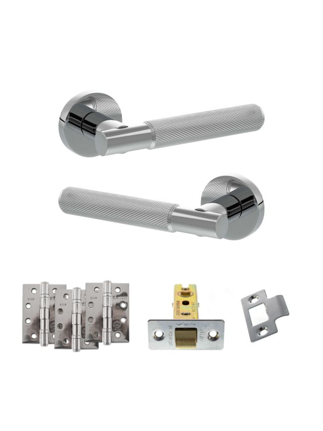 Senza Pari Rosarno Door Handle Pack (Latch Set - 2.5" CE Latch, 4" Fire Rated Hinges x3) - Polished Chrome