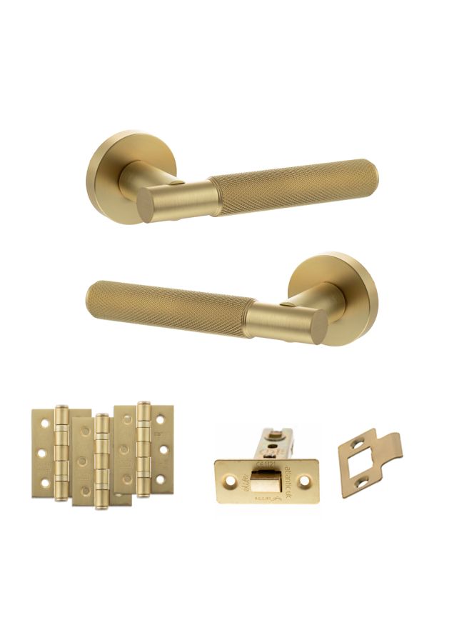 Senza Pari Rosarno Door Handle Pack (Latch Set - 3" CE Latch, 3" Fire Rated Hinges x3) - Satin Brass