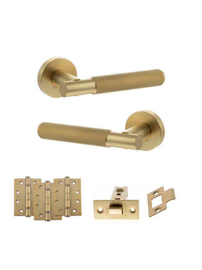 Senza Pari Rosarno Door Handle Pack (Latch Set - 3" CE Latch, 4" Fire Rated Hinges x3) - Satin Brass