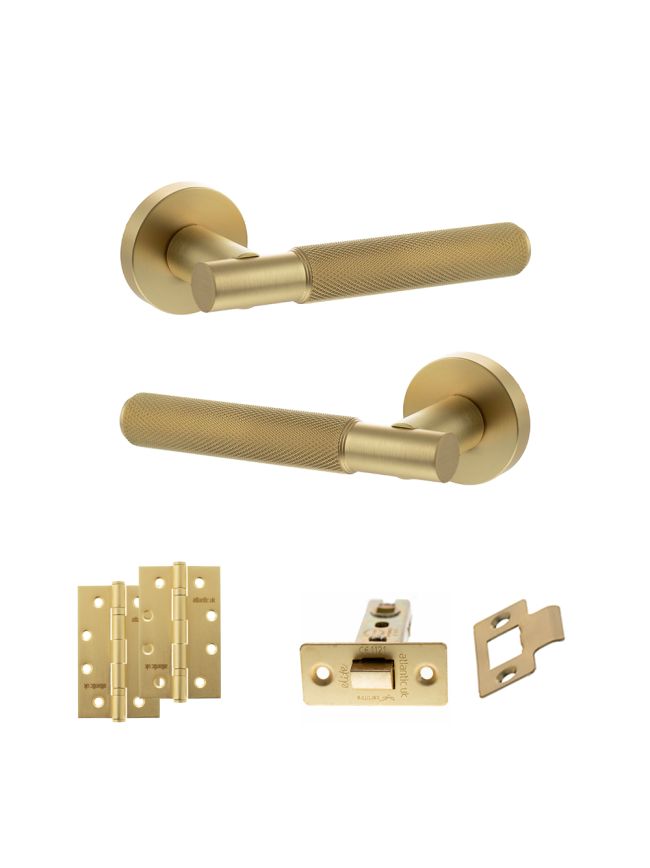 Senza Pari Rosarno Door Handle Pack (Latch Set - 3" CE Latch, 4" Slim Knuckle Hinges x2) - Satin Brass