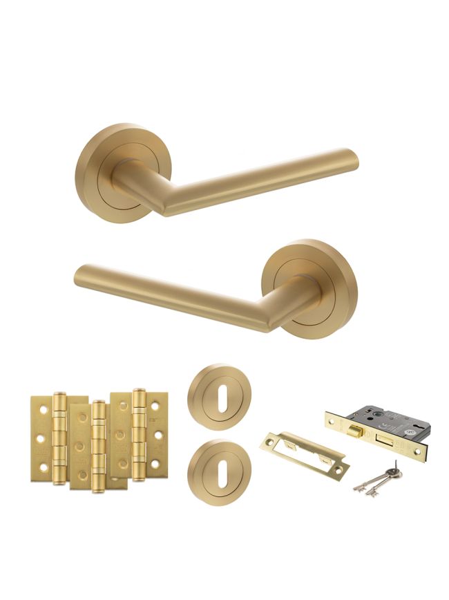 • A low security option for use on internal doors you’d like to lock with a key such as bedrooms or studys. It comes with a pair of handles, 3 lever sashlock, 2 keys, 2 key escutcheons and hinges.