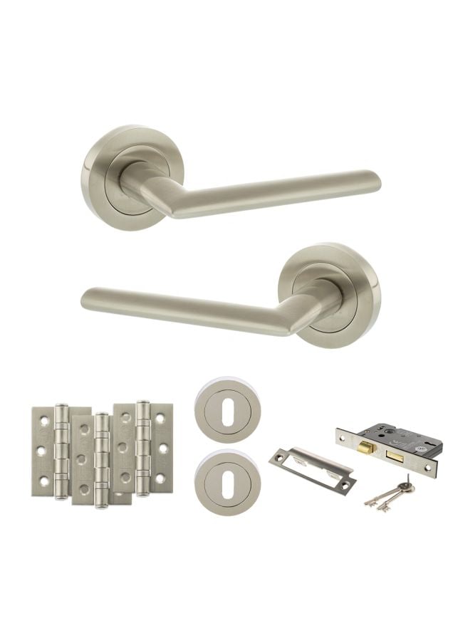 STATUS Alabama Door Handle Pack (3 Lever Lock Set - 3" CE Sashlock, 3" Fire Rated Hinges x3) - Satin Nickel