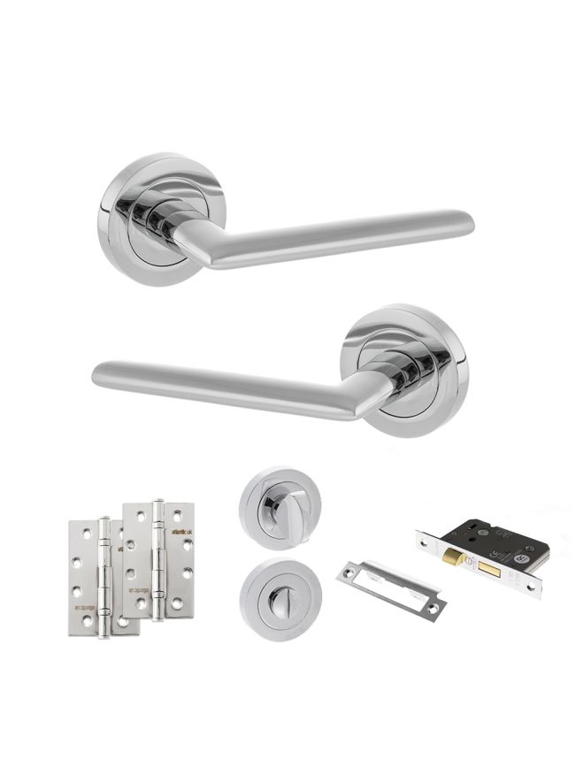 STATUS Alabama Door Handle Pack (Bathroom Set - 2.5" CE Bathroom Lock, 4" Slim Knuckle Hinges x2) - Polished Chrome