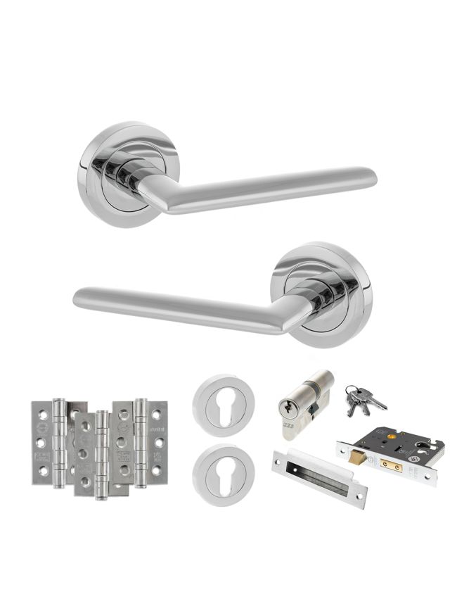 STATUS Alabama Door Handle Pack (Euro Lock Set - 2.5" CE Sashlock, 3" Fire Rated Hinges x3) - Polished Chrome