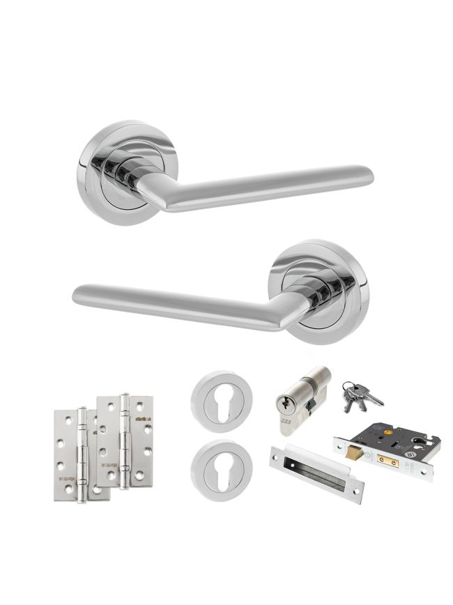 STATUS Alabama Door Handle Pack (Euro Lock Set - 2.5" CE Sashlock, 4" Slim Knuckle Hinges x2) - Polished Chrome