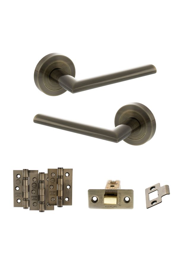 STATUS Alabama Door Handle Pack (Latch Set - 2.5" CE Latch, 3" Fire Rated Hinges x3) - Antique Brass