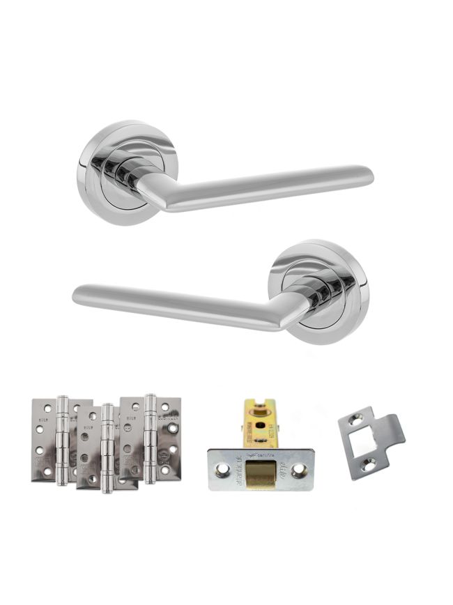 STATUS Alabama Door Handle Pack (Latch Set - 2.5" CE Latch, 4" Fire Rated Hinges x3) - Polished Chrome