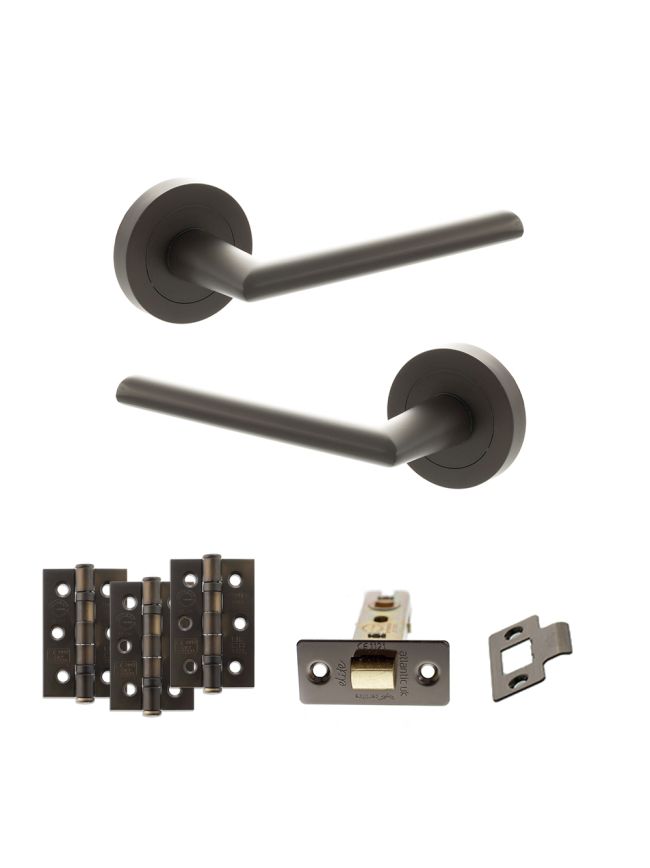 STATUS Alabama Door Handle Pack (Latch Set - 3" CE Latch, 3" Fire Rated Hinges x3) - Urban Dark Bronze