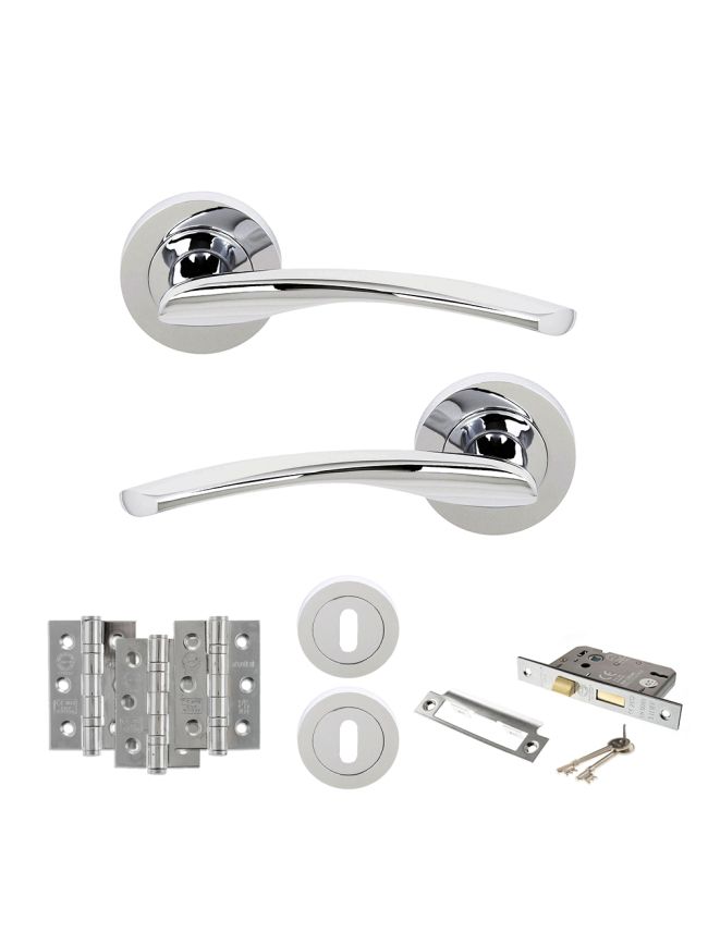• A low security option for use on internal doors you’d like to lock with a key such as bedrooms or studys. It comes with a pair of handles, 3 lever sashlock, 2 keys, 2 key escutcheons and hinges.