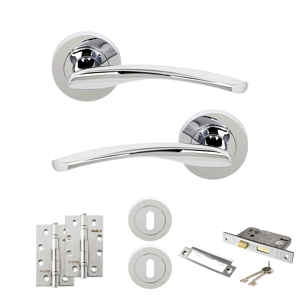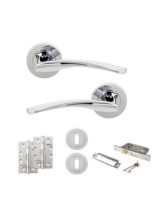 STATUS Arizona Door Handle Pack (3 Lever Lock Set - 2.5" CE Sashlock, 4" Slim Knuckle Hinges x2) - Polished Chrome