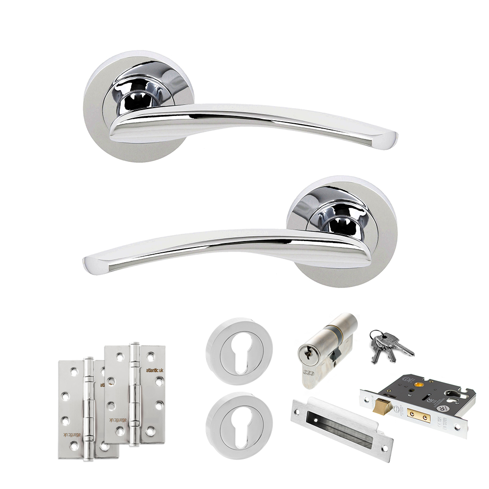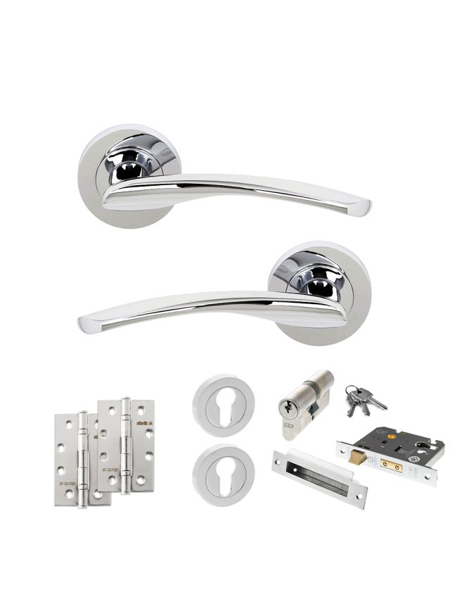 STATUS Arizona Door Handle Pack (Euro Lock Set - 2.5" CE Sashlock, 4" Slim Knuckle Hinges x2) - Polished Chrome