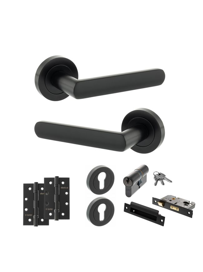 STATUS Carolina Door Handle Pack (Euro Lock Set - 3" CE Sashlock, 4" Slim Knuckle Hinges x2) - Matt Black